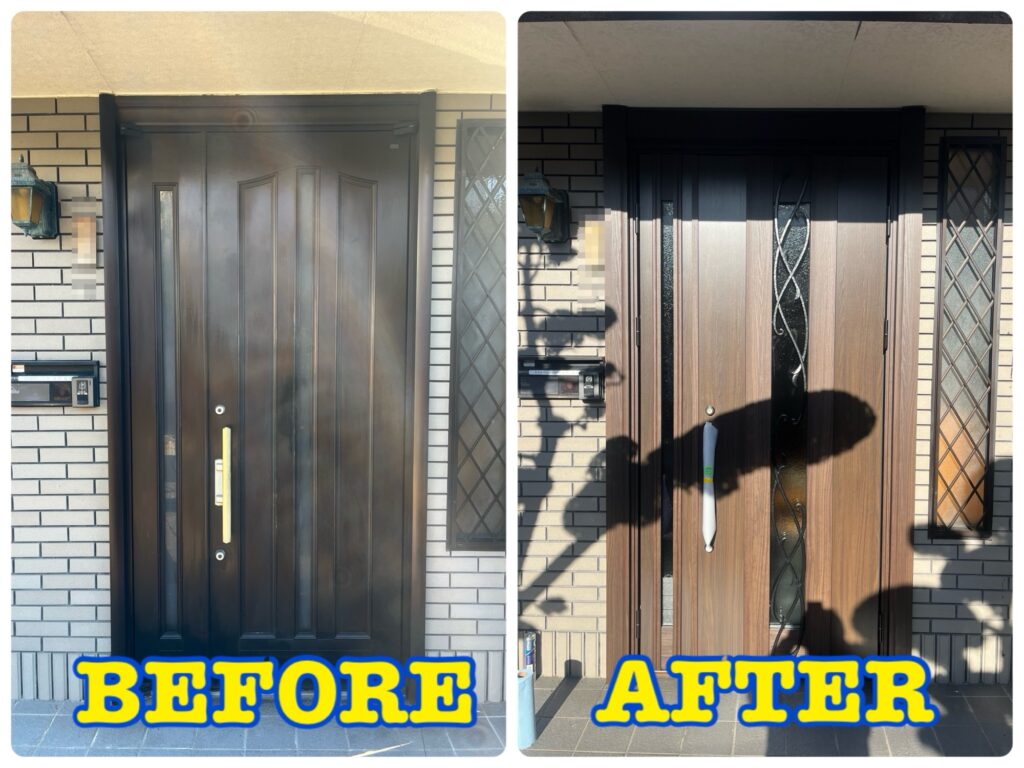 福岡市南区桧原|表面が腐食したドアを1日で新しい玄関ドアにリノベーション