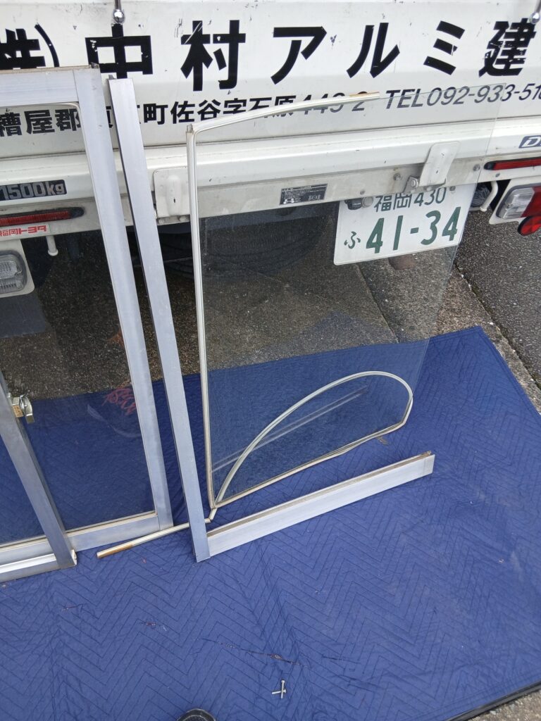 アルミのフレームの中に入っている元の1枚ガラスを取り外していきます。