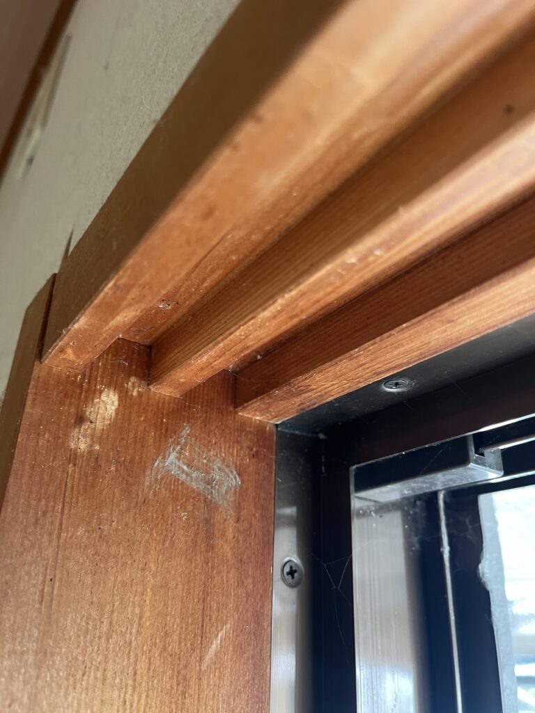 この和障子が入っている溝になってる部分にカバー工法の部材が干渉しなければ窓を交換できて和紙障子もそのまま流用できます!和室に内窓をつける時はこの溝の部分にちょうど内窓の枠がきて和紙障子の代わりに内窓となりますが、今回は窓の交換です、