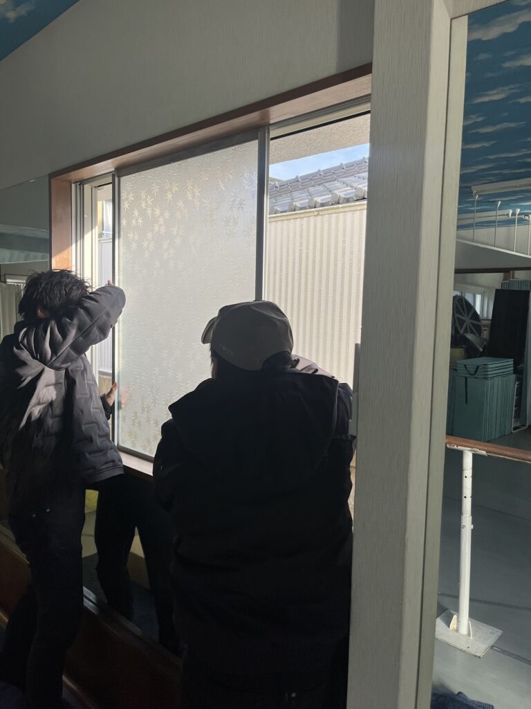 築年数が多くなると、窓枠自体がゆがんだりしているので取り外し作業にも時間がかかります。こちらの窓も1人では取り外しづらかったのですが2人いたので問題なく取り外しができました。