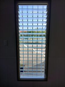 既存のルーバー窓(ジャロジー窓)のガラスを外しています。