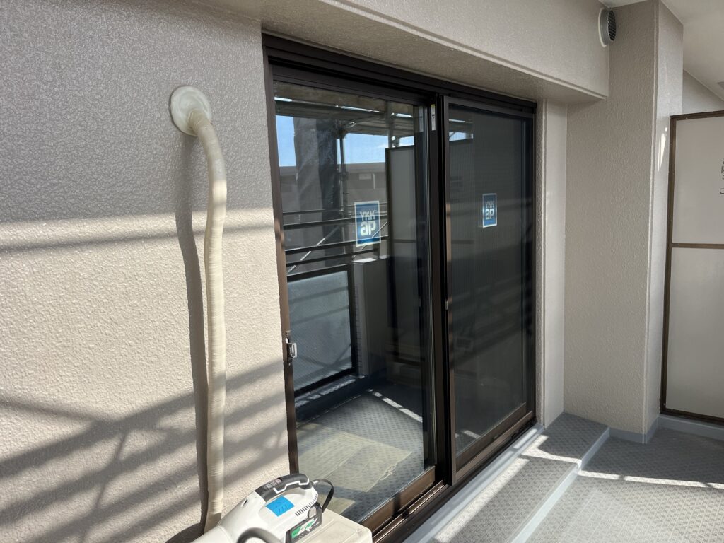 マンション用マドリモ後の外部のようすですが外側にモール等はつかないのでカバー工法したようには見えないほどきれいに仕上がっています。