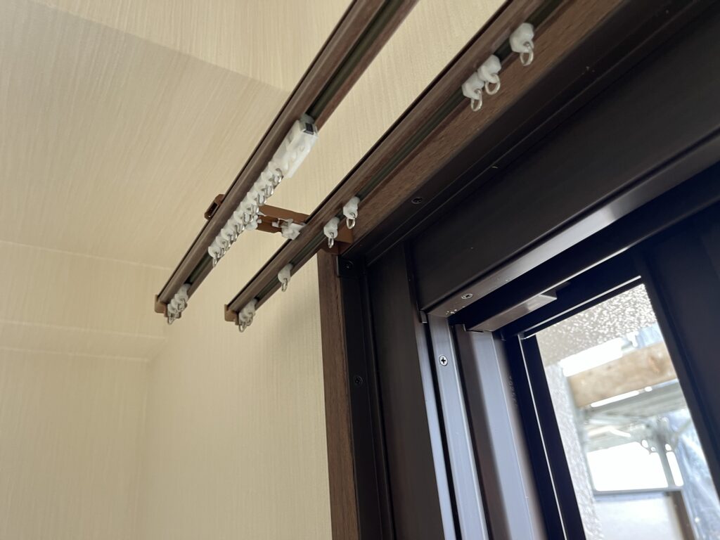 既存のカーテンはそのままで窓工事できましたのでそのままカーテンは使用できました。マドリモではなく内窓の場合は一度取り外して再度カーテンを取付する形となります。