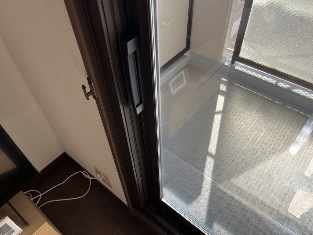 ガラスはトリプルガラスでガラス1枚の重量が40キロほどになるのでオプションのサポート引手も取付しています。これがあれば開閉が楽になります。