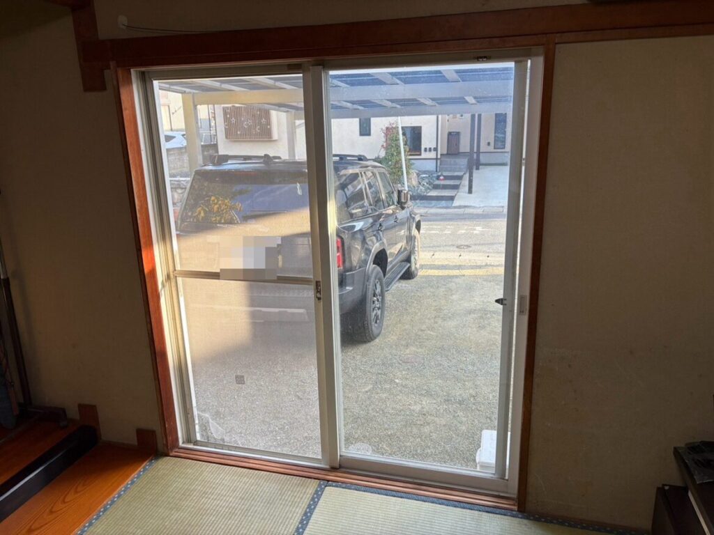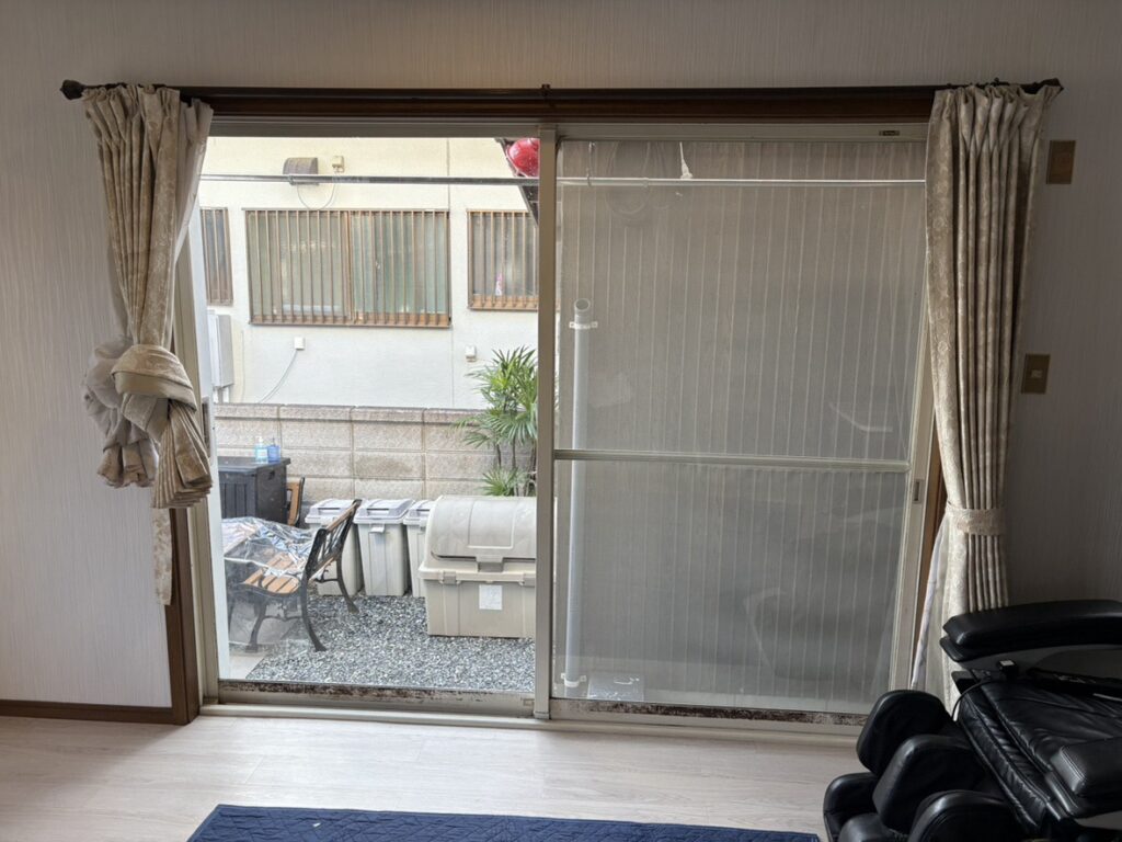 リビングの大きな掃出し窓は窓のレールが擦り減っており窓を閉めても隙間が少し発生する状態でした。