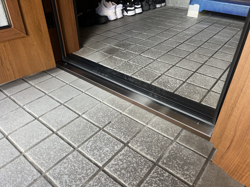 リフォーム後の下側です。室内側には段差ができるのでつまずいたりして危ないので段差緩和材の黒色のゴムを貼り付けています!