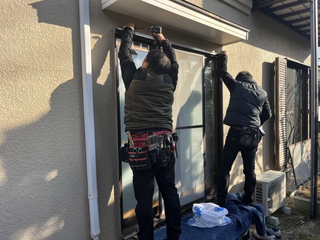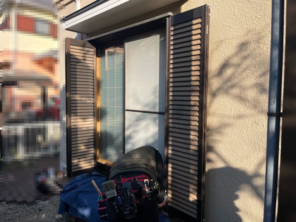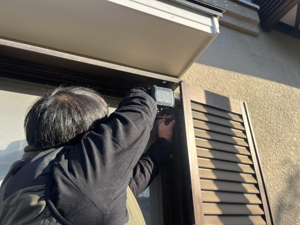 皆さんこんにちは店長の江田です!今日は筑紫野市の戸建てに昔のYKKAPの折戸タイプの雨戸を解体して新しく後付けの電動シャッターを窓に取付工事します。