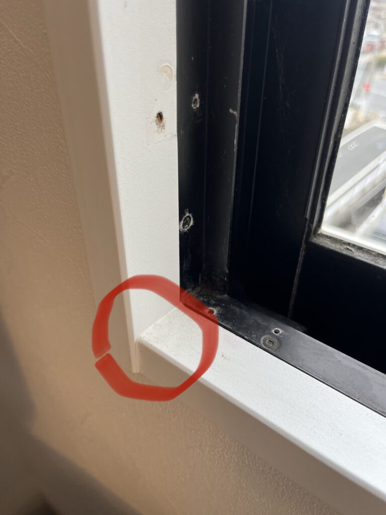 写真の赤丸の箇所に段差が約3ミリ程度あるので内窓のふかし枠を取り付けする前にこの段差を調整していきます。