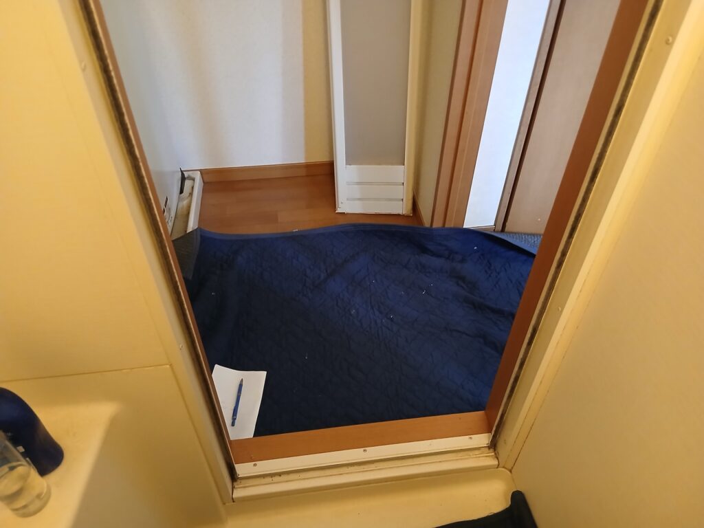 今回は福岡市博多区マンションにて浴室の折戸の工事となります。お伺いした時には折戸が壊れて状態で、外れていました。